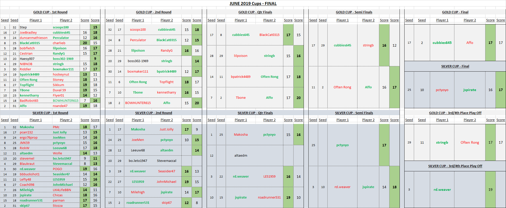 Some close games with the Gold final and 3rd/4th place matches decided on the Giantkiller rule and the Silver Cup final only had 1pt in it too.