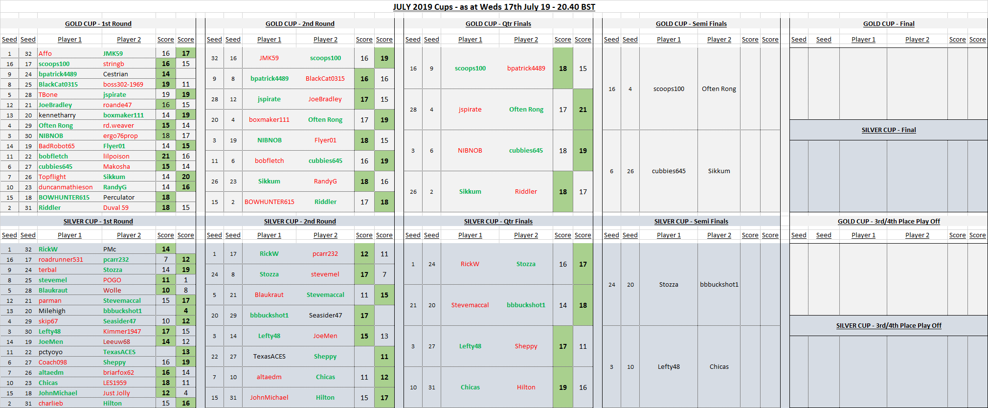 The Gold Cup Finalists are known, 2 more scores to come for the Siler Cup: