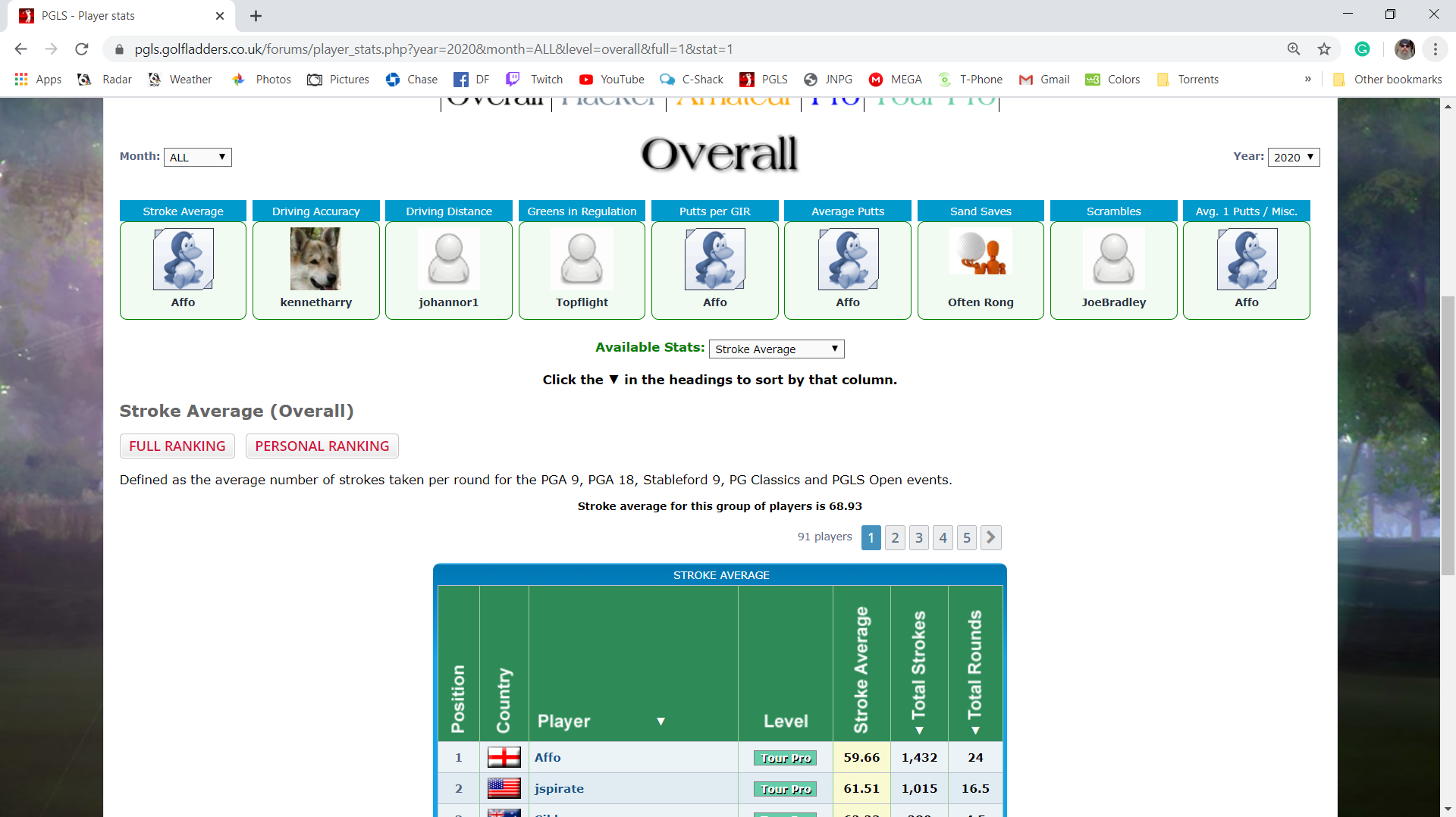 Rest of leaderboard looks pretty tight tbh (3rd to 1th covered by just 4pts this week) and this week I had a very lucky week, RickW watched my first 2 rounds live on steam and he saw how I got lucky (Par 5, hit tree with 2nd but stayed dry and pitched in for eagle...very lucky!!). Other 2 rounds were matched or bettered by others.