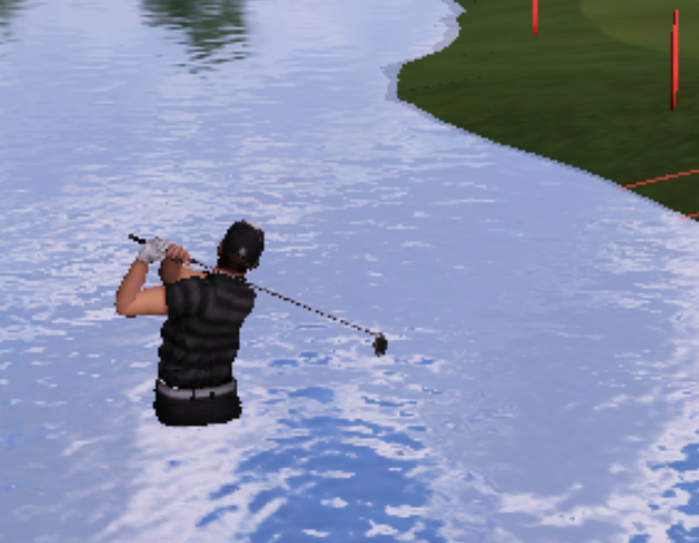 oak hollow course needs to be sorted out to many glitches. heres one where wayne hits 220 yards straight down the fairway from the lake.