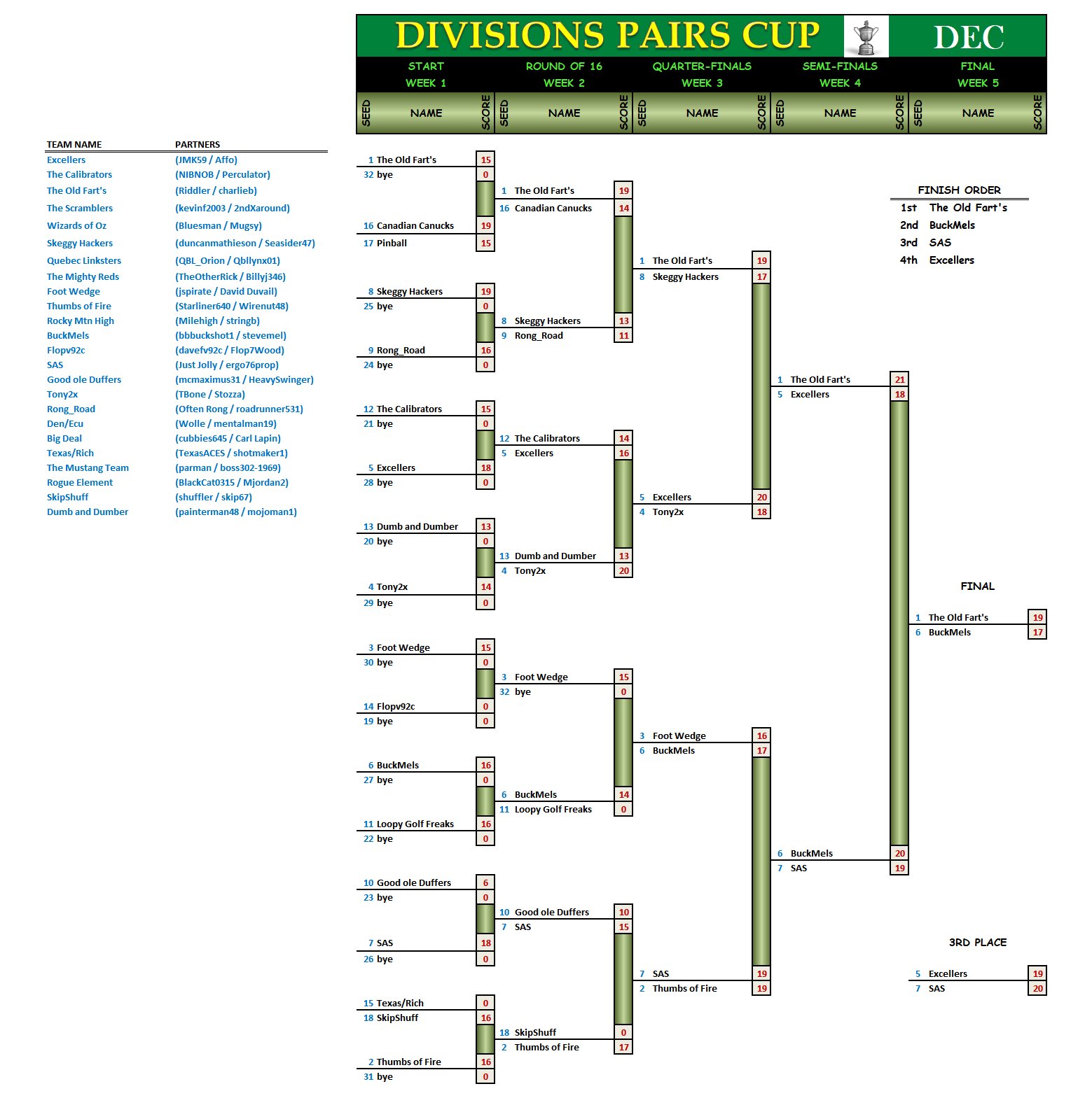 The Pairs Cup bracket for the top 32 scores from November: