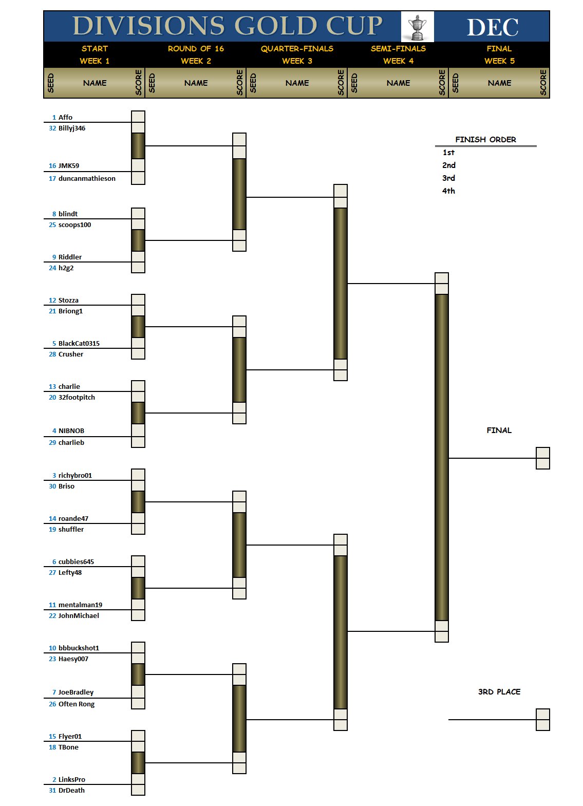 The Gold Cup bracket for the top 32 scores from November: