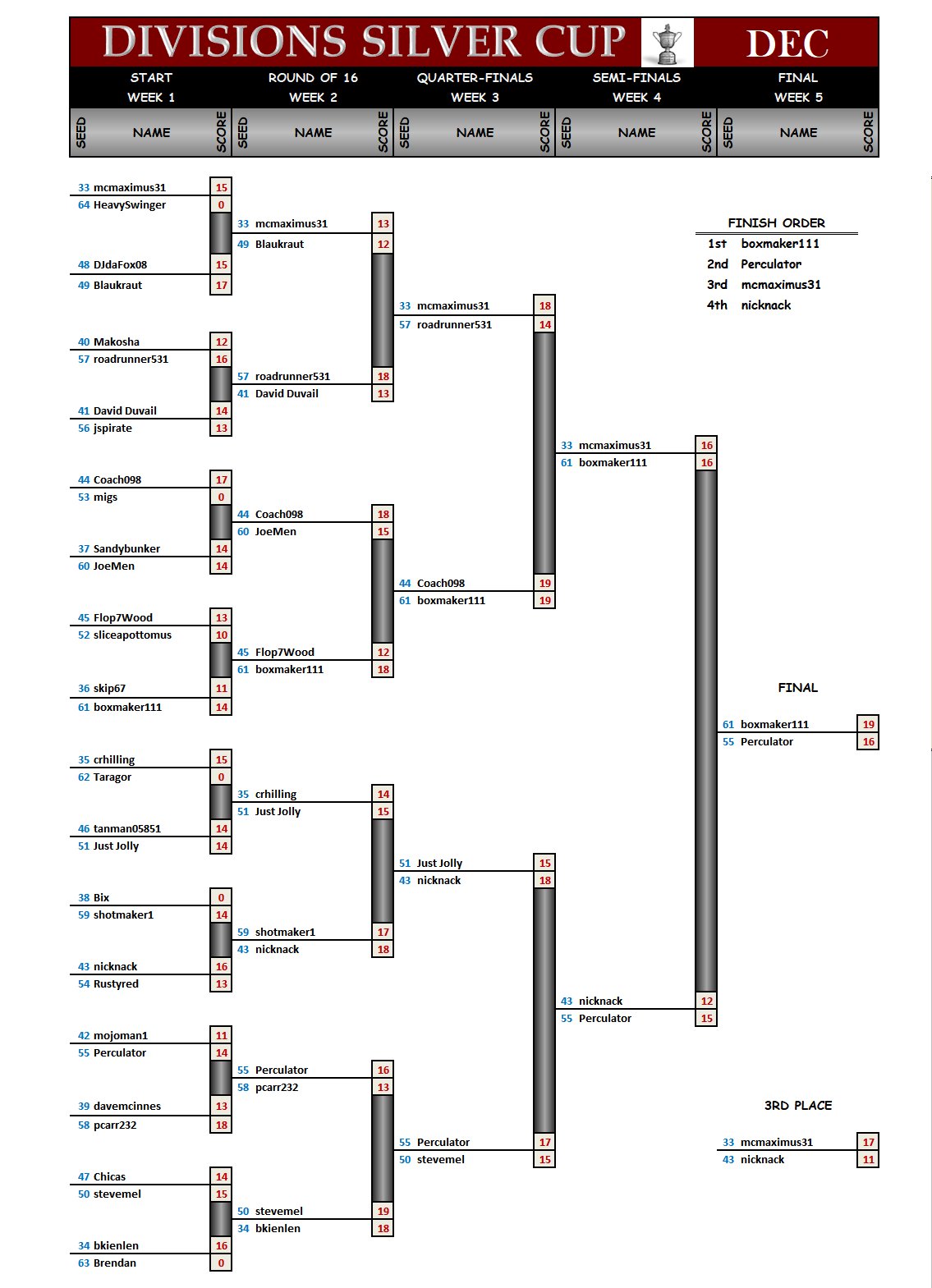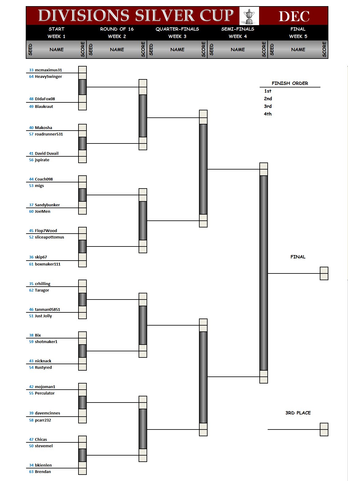 The Silver Cup bracket for scores 33 to 64 from November: