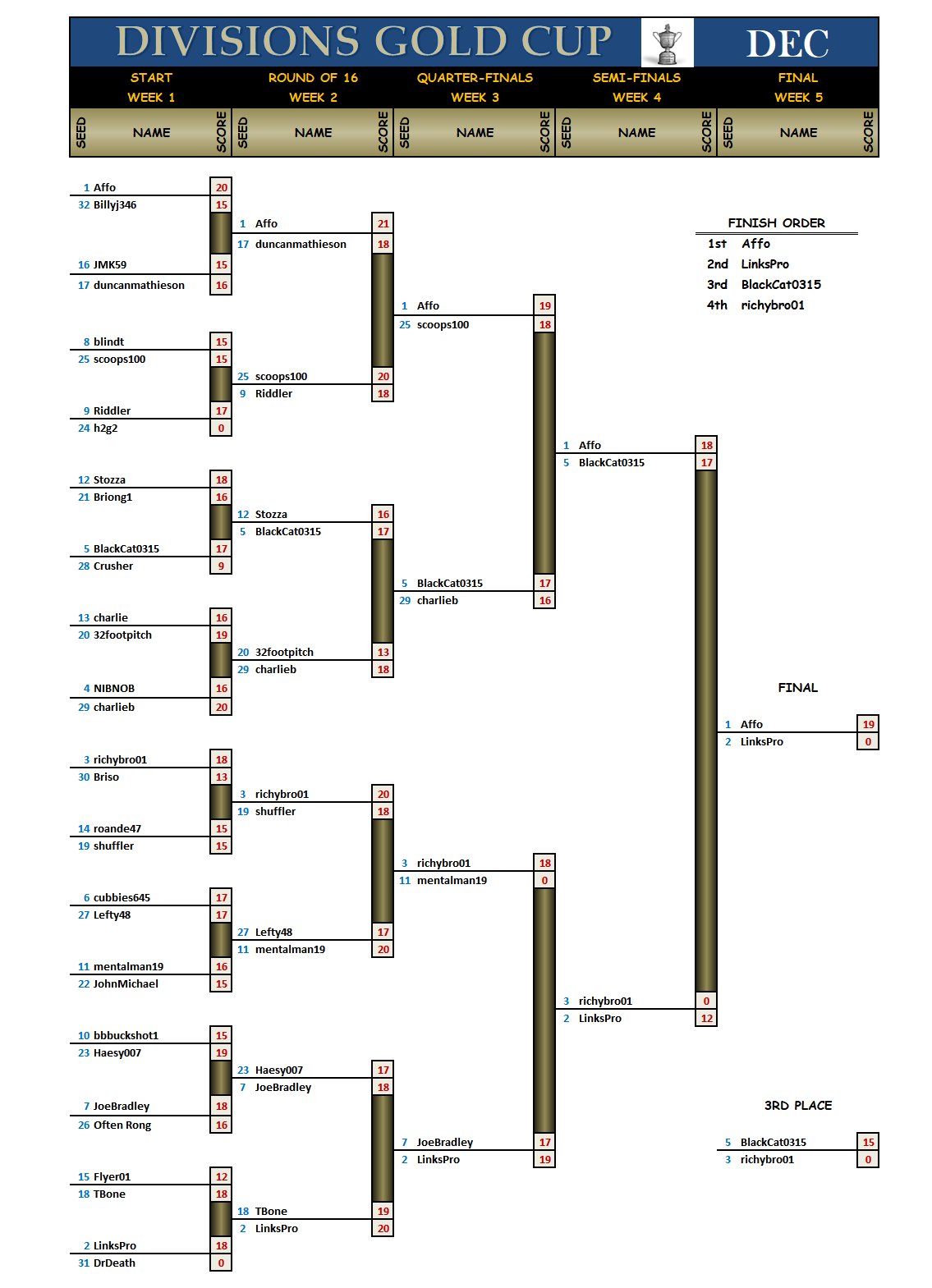 December Gold Cup Final results are in.