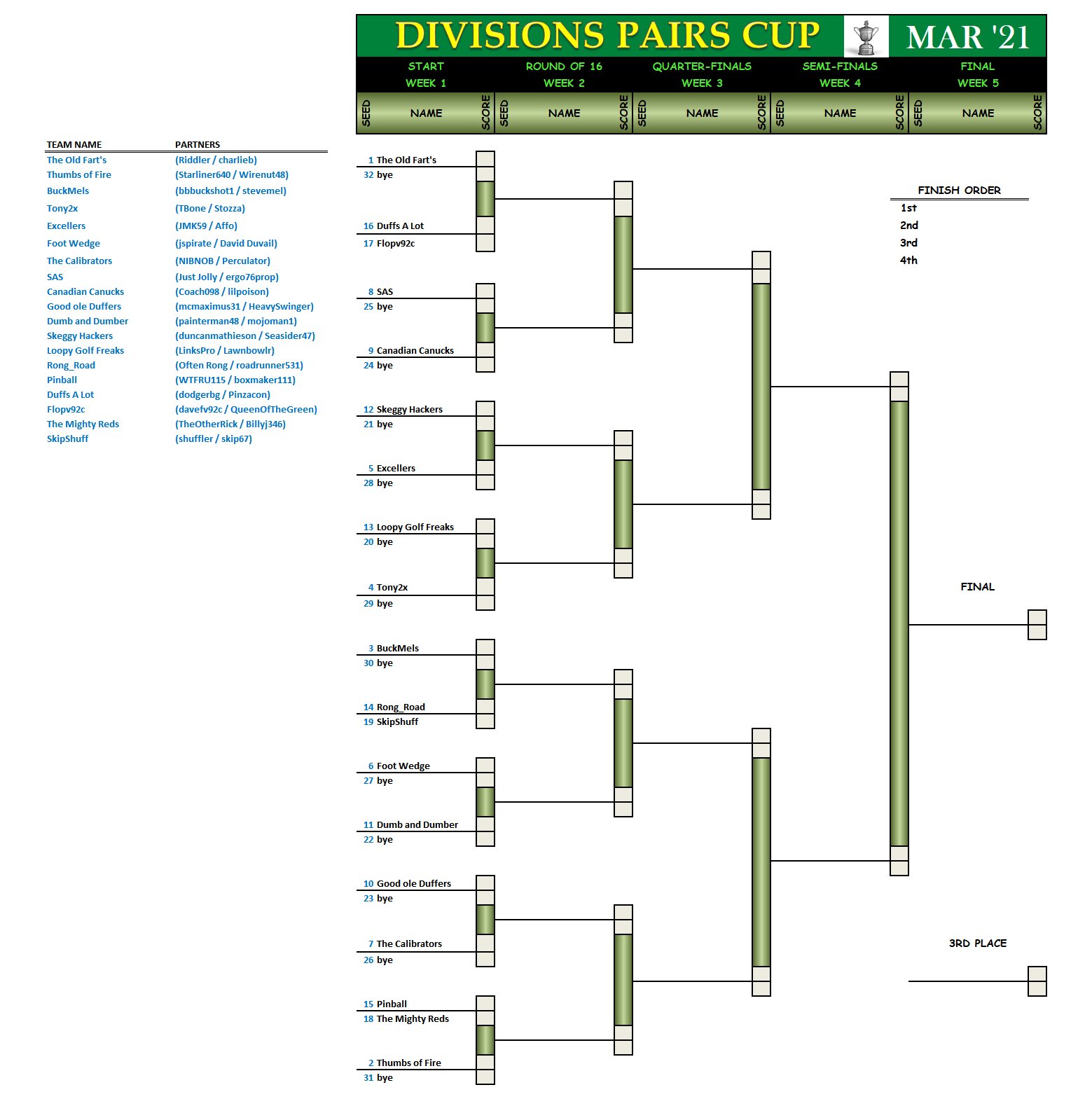 The Pairs Cup bracket for the top 32 scores from February 2021: