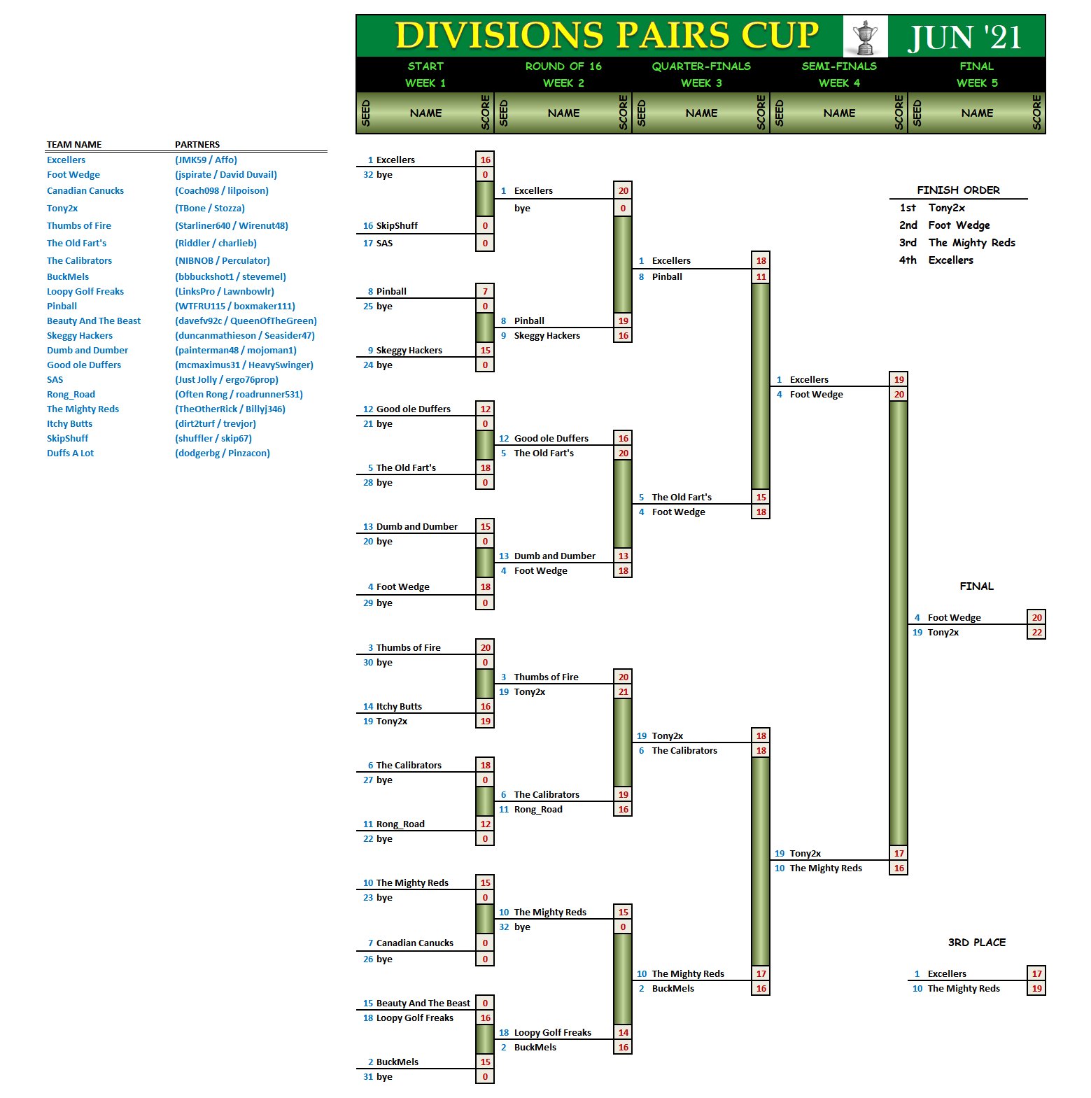 The Pairs Cup bracket for the top 32 scores from May 2021: