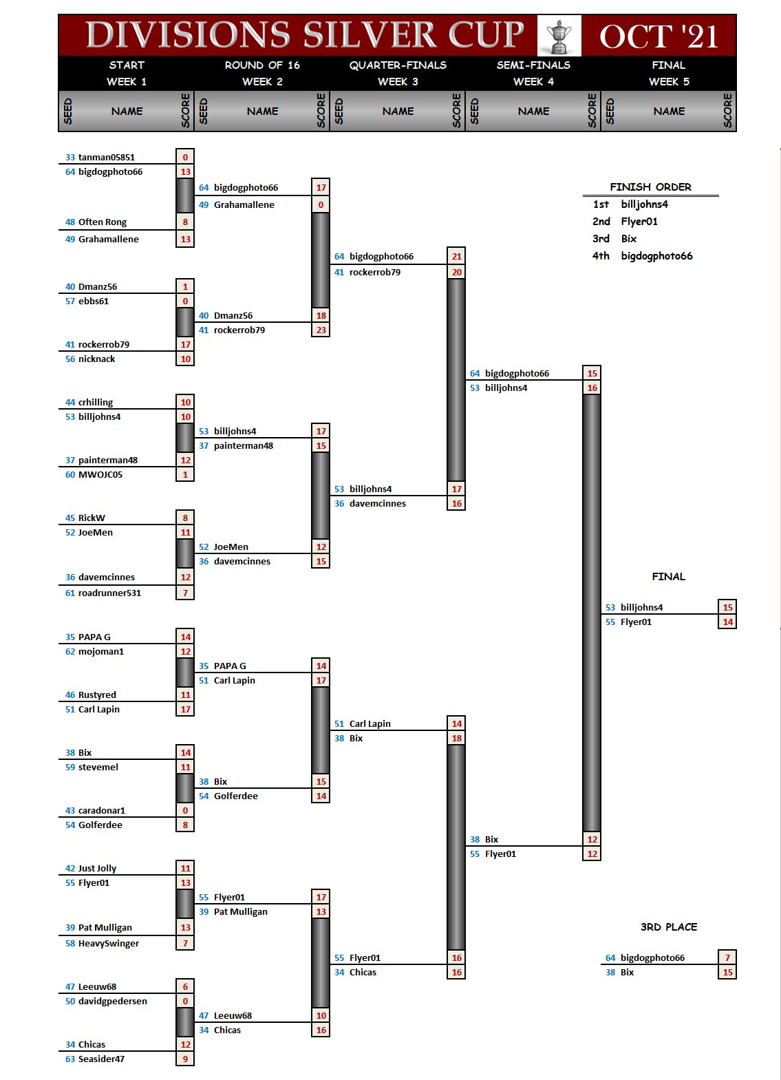 The Silver Cup bracket for scores 33 to 64 from September 2021: