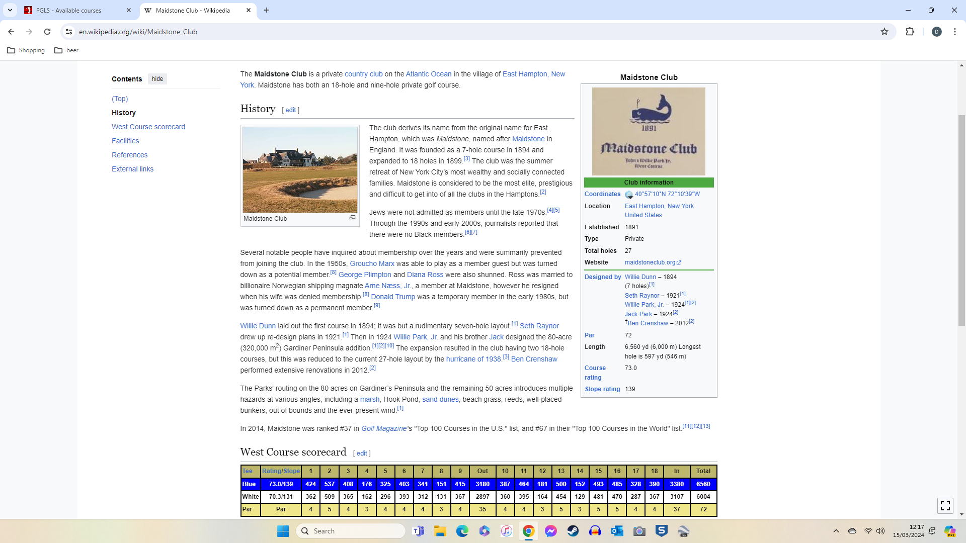 Maidstone Club (West Course) has been updated in the PGLS Courses database.
