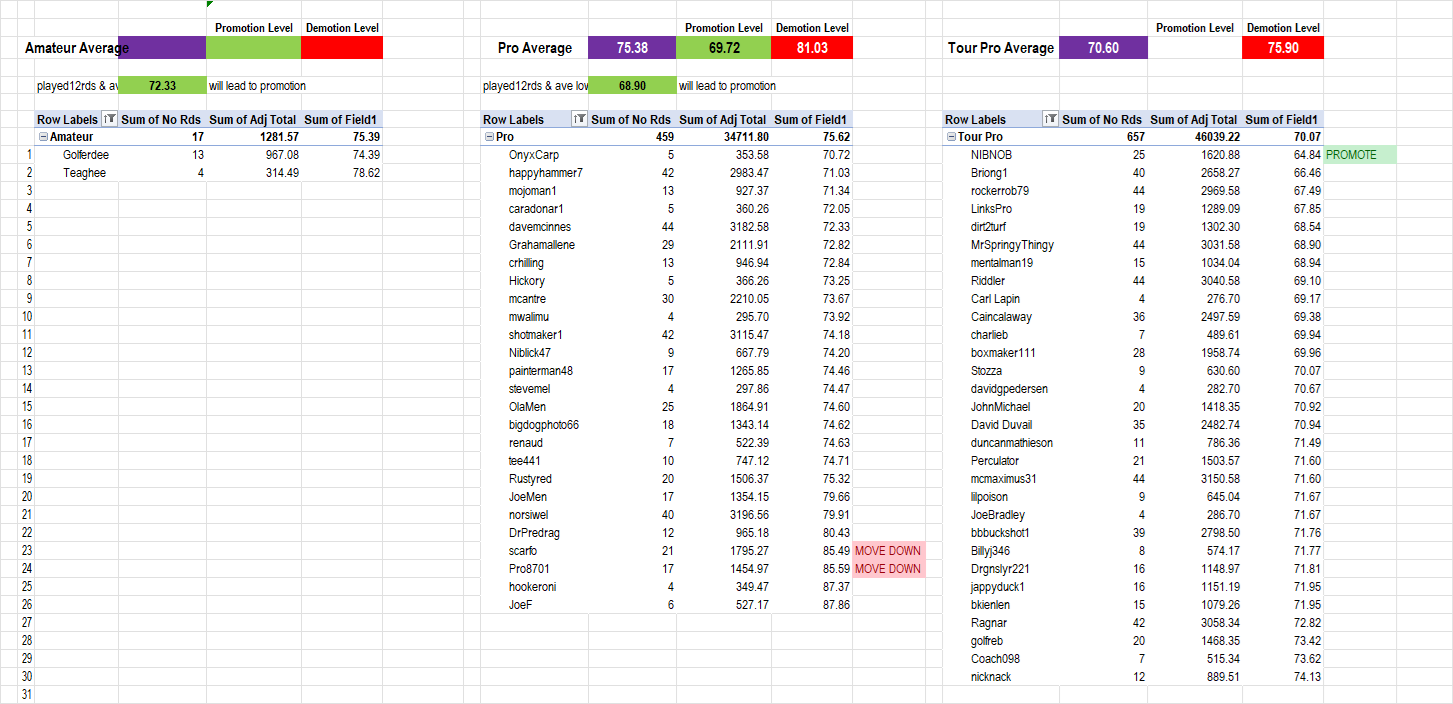 Player Tier Movements are calculated based on the PGA 9, PGA 18, PGLS Open and PGLS Tours tournies. Full rules can be found on this page ...