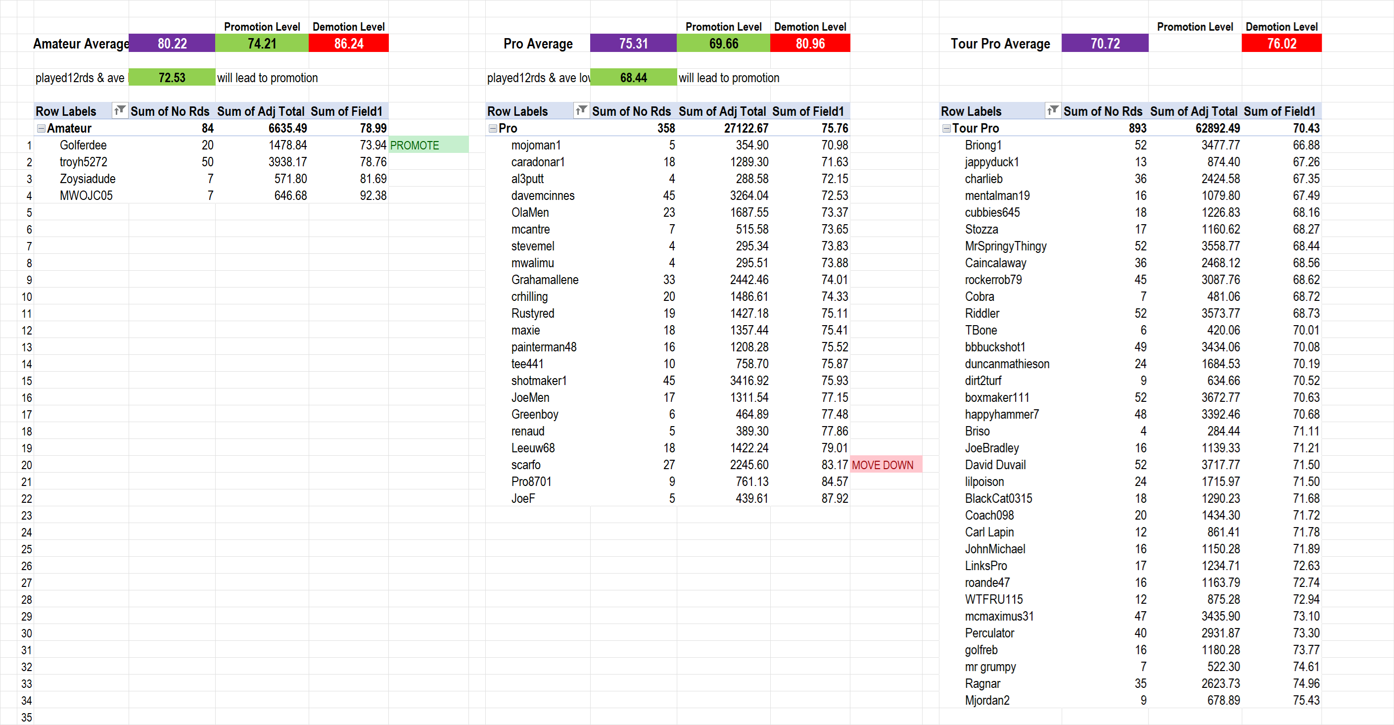 Player Tier Movements are calculated based on the PGA 9, PGA 18, PGLS Open and PGLS Tours tournies. Full rules can be found on this page ...