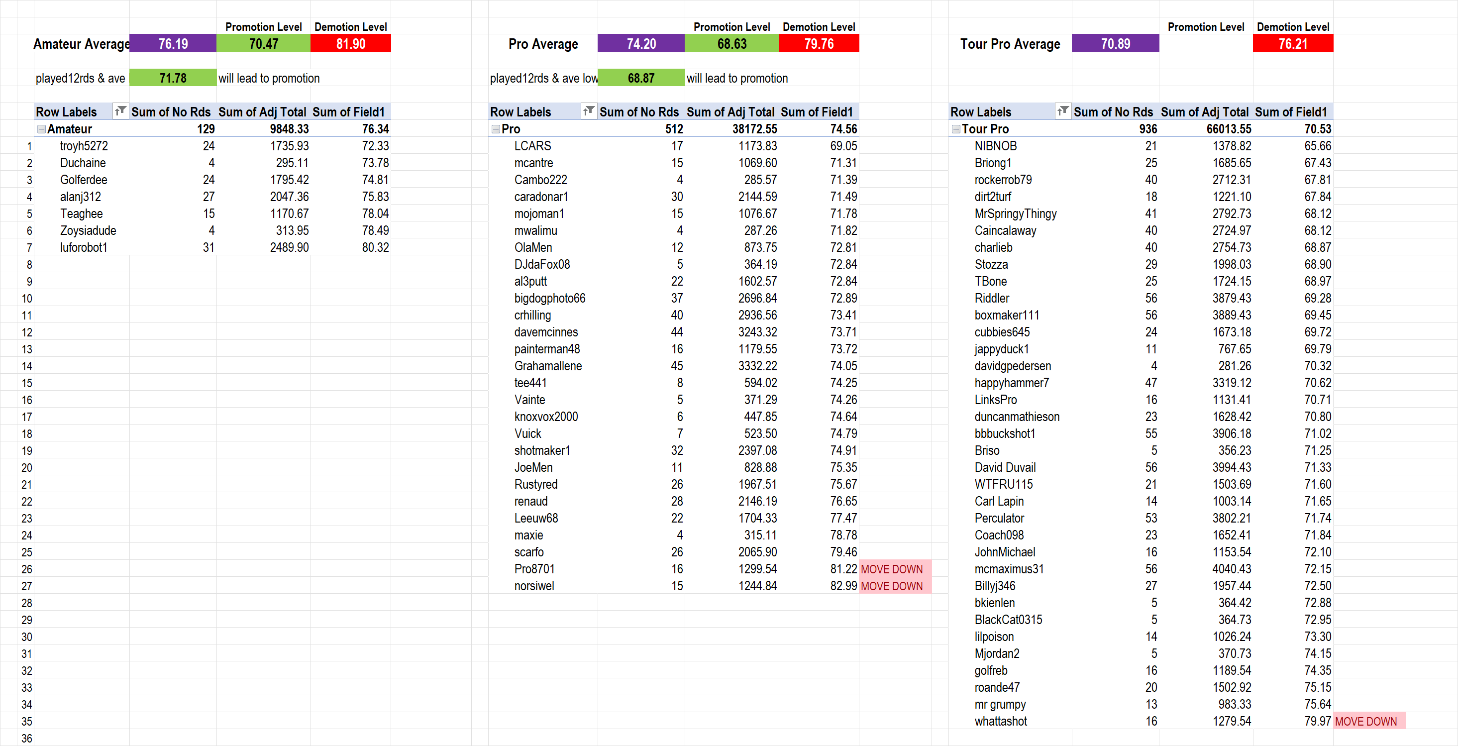 Player Tier Movements are calculated based on the PGA 9, PGA 18, PGLS Open and PGLS Tours tournies. Full rules can be found on this page ...