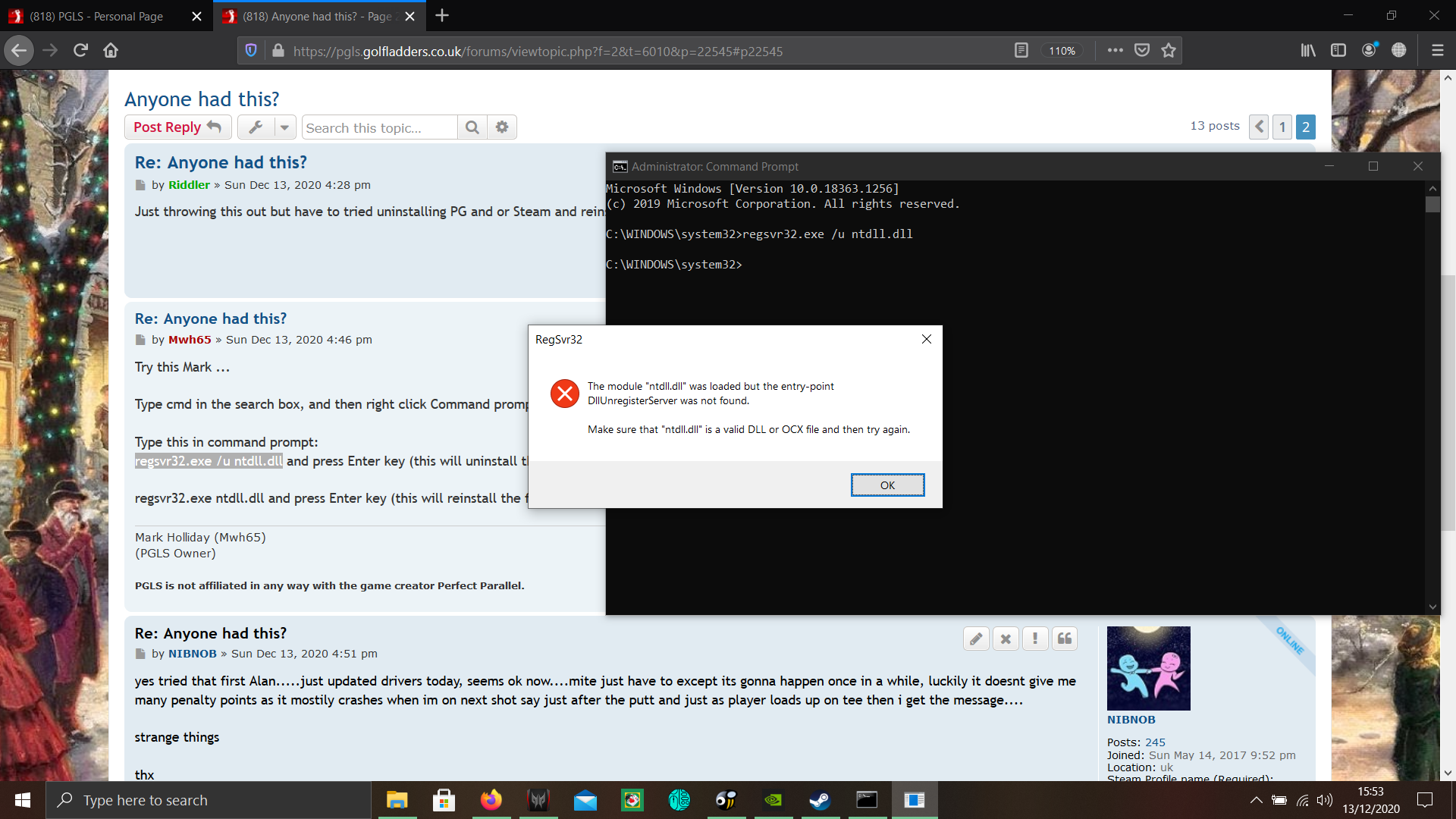 yes tried that first Alan.....just updated drivers today, seems ok now....mite just have to except its gonna happen once in a while, luckily it doesnt give me many penalty points as it mostily crashes when im on next shot say just after the putt and just as player loads up on tee then i get the message....