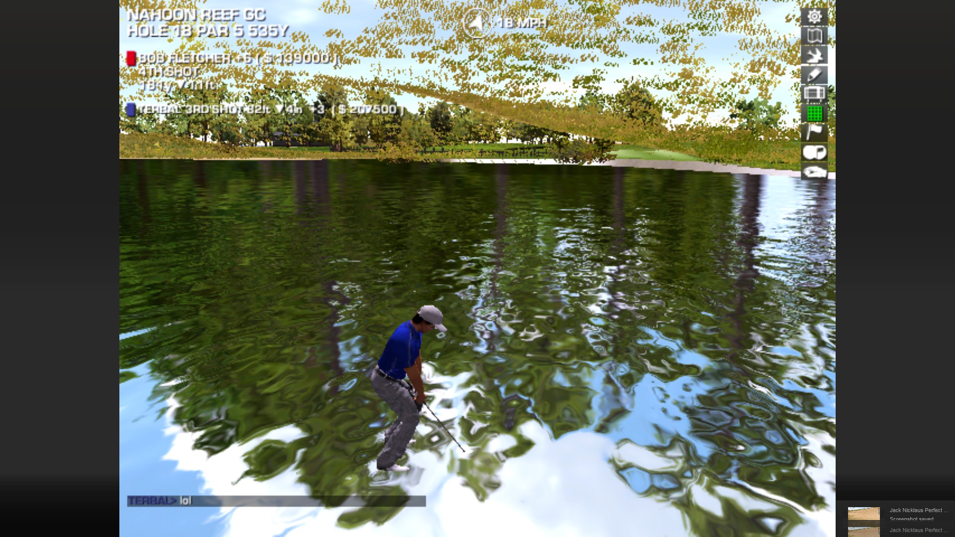 At least I made a better job of getting out of the stream than Jean Van de Velde did. Oh, and although my ball was right in the middle of the stream, I had the option of playing it "as it lies" which I took advantage of hehe...