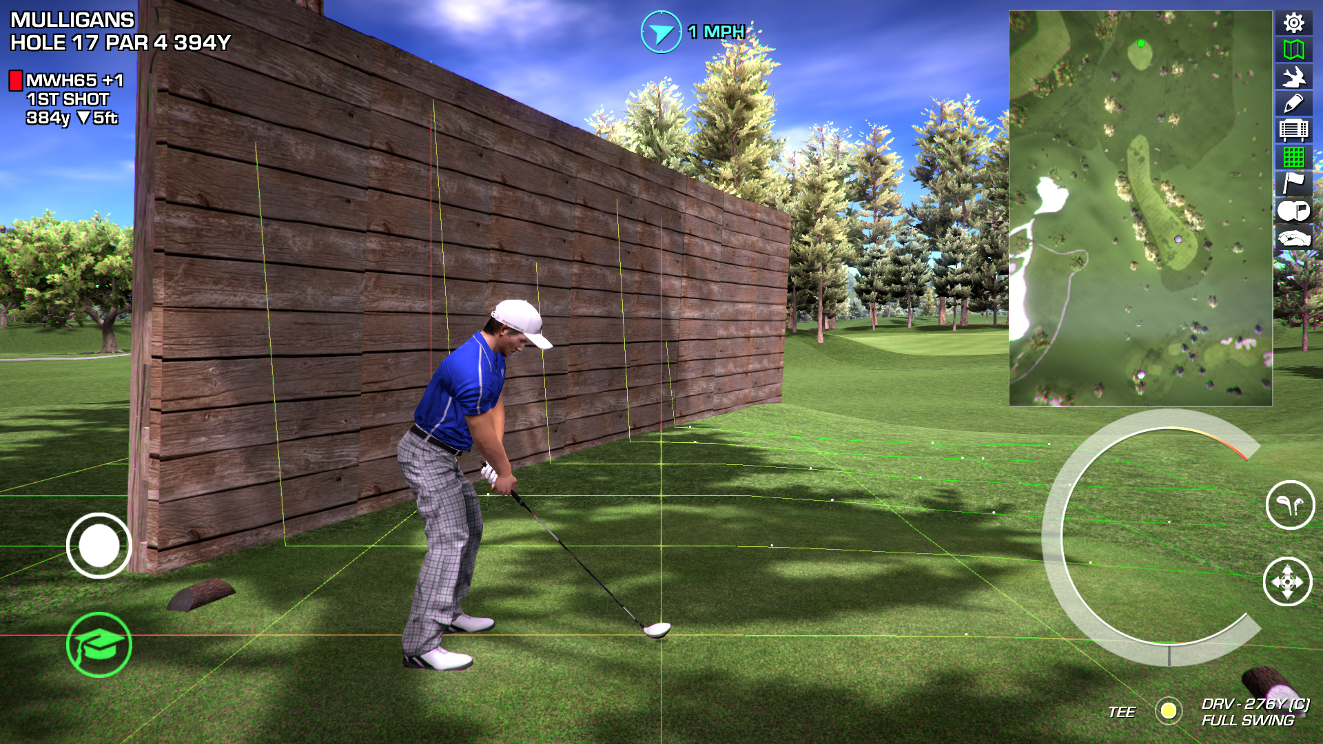 hole 15 cf by Jim Smyth, on FlickrThis is how hole 15 looks in course forge notice the distance to the green is about 272 yards the driver can get the ball to the green - I did not want the player to be able to make this shot so I put up trees however stupid Perfect Golf or Course Forge or whatever lines up the player aimed at the green rather than the shotpoint. ....... so the player has to look at the overhead and figure out where to actually aim hopefully they will notice they can either go for the shotpoint (brick wall) shot OR the narrow fairway - closer to the green shot.