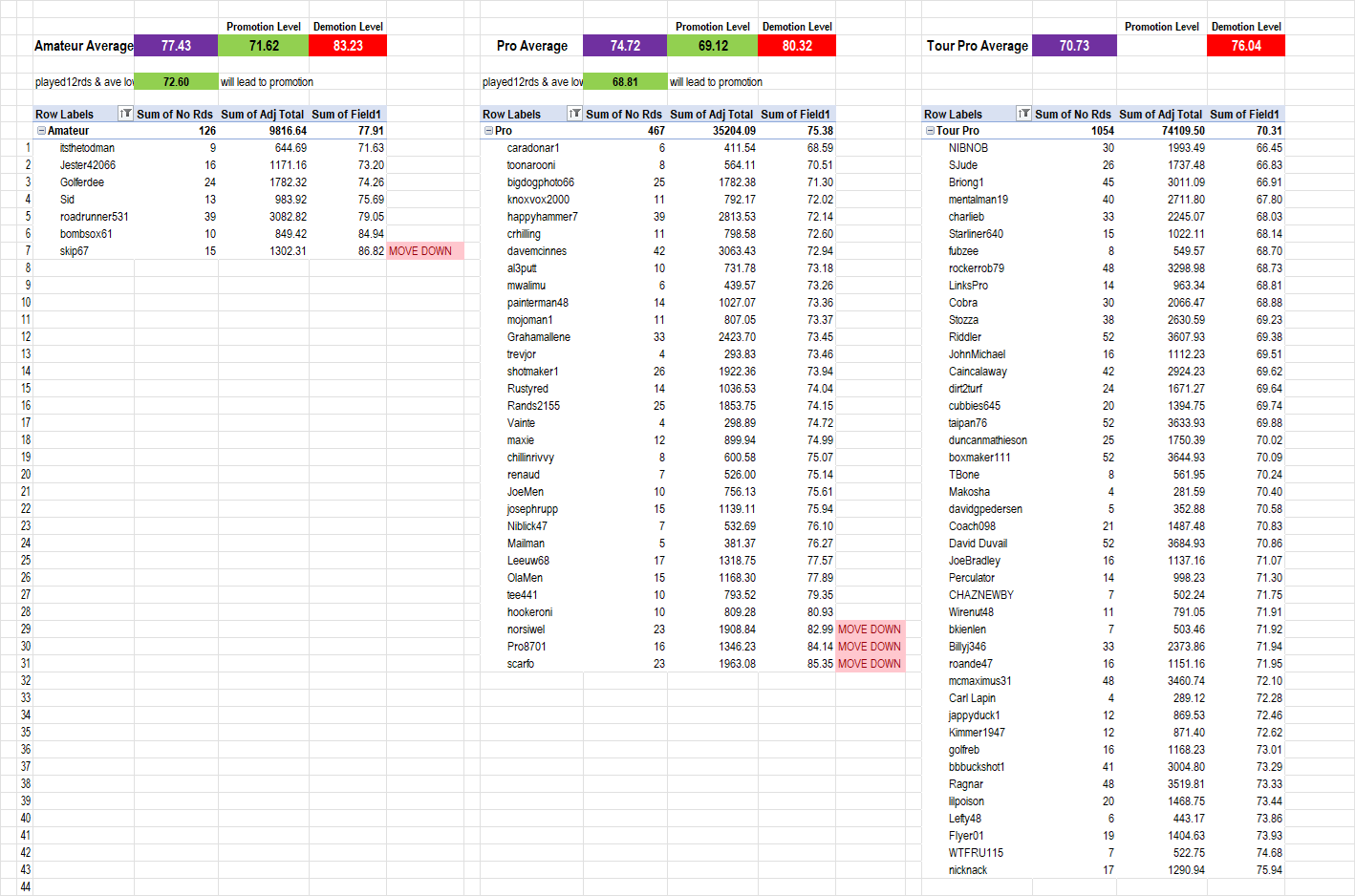 Player Tier Movements are calculated based on the PGA 9, PGA 18, PGLS Open and PGLS Tours tournies. Full rules can be found on this page ...