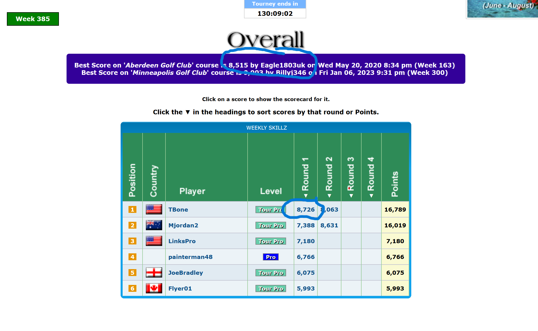 Tony's round 1 score has not overtook Eagle1803uk score in the best score box....is it because theres 2 courses?