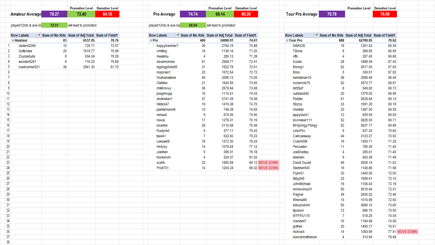 Player Tier Movements are calculated based on the PGA 9, PGA 18, PGLS Open and PGLS Tours tournies. Full rules can be found on this page ...
