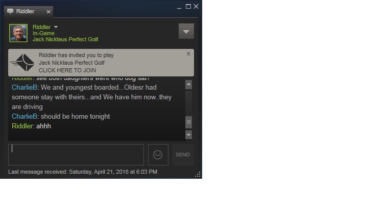 This shows Riddler "In Game", but my name in the chat window is Blue...designating "Online"