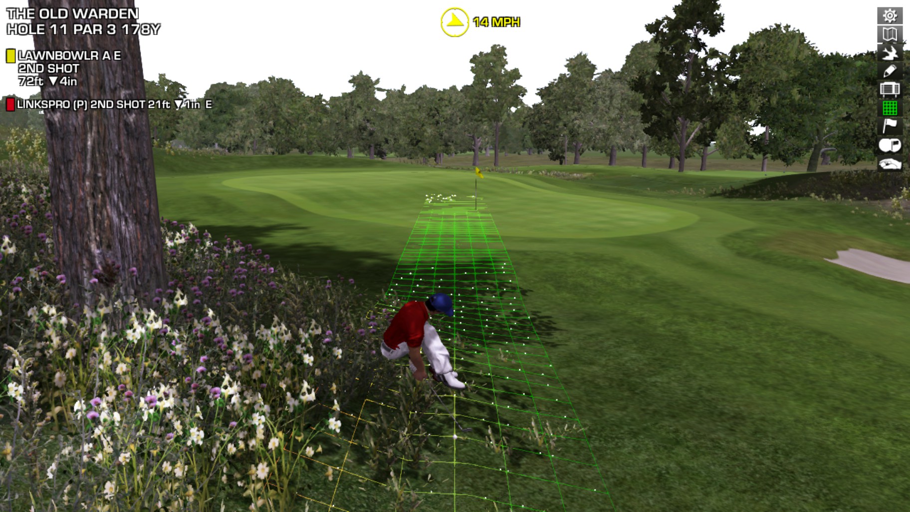 Lawnbowlr decided to levitate while sitting to hit his shot out of the rough. I think there was poison ivy under him.
