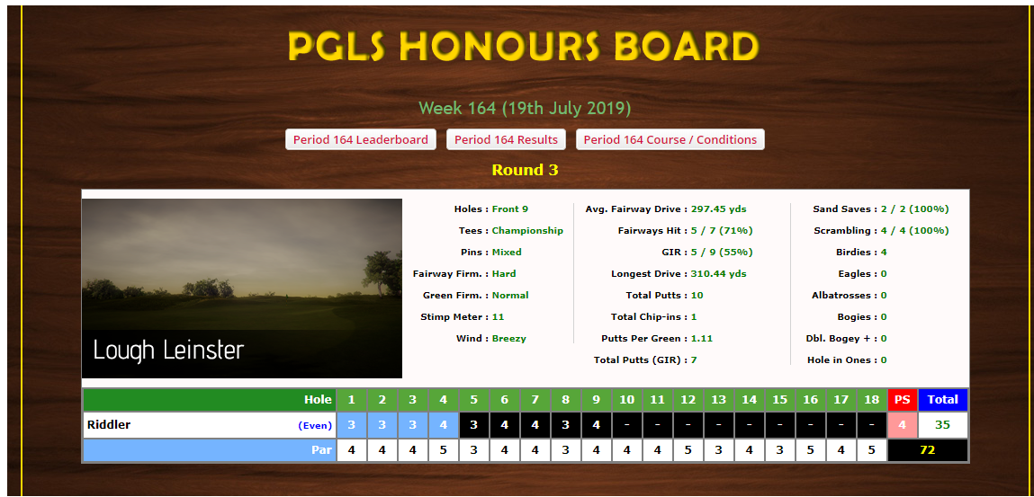 A PGA 18 Honours Board is also available ...