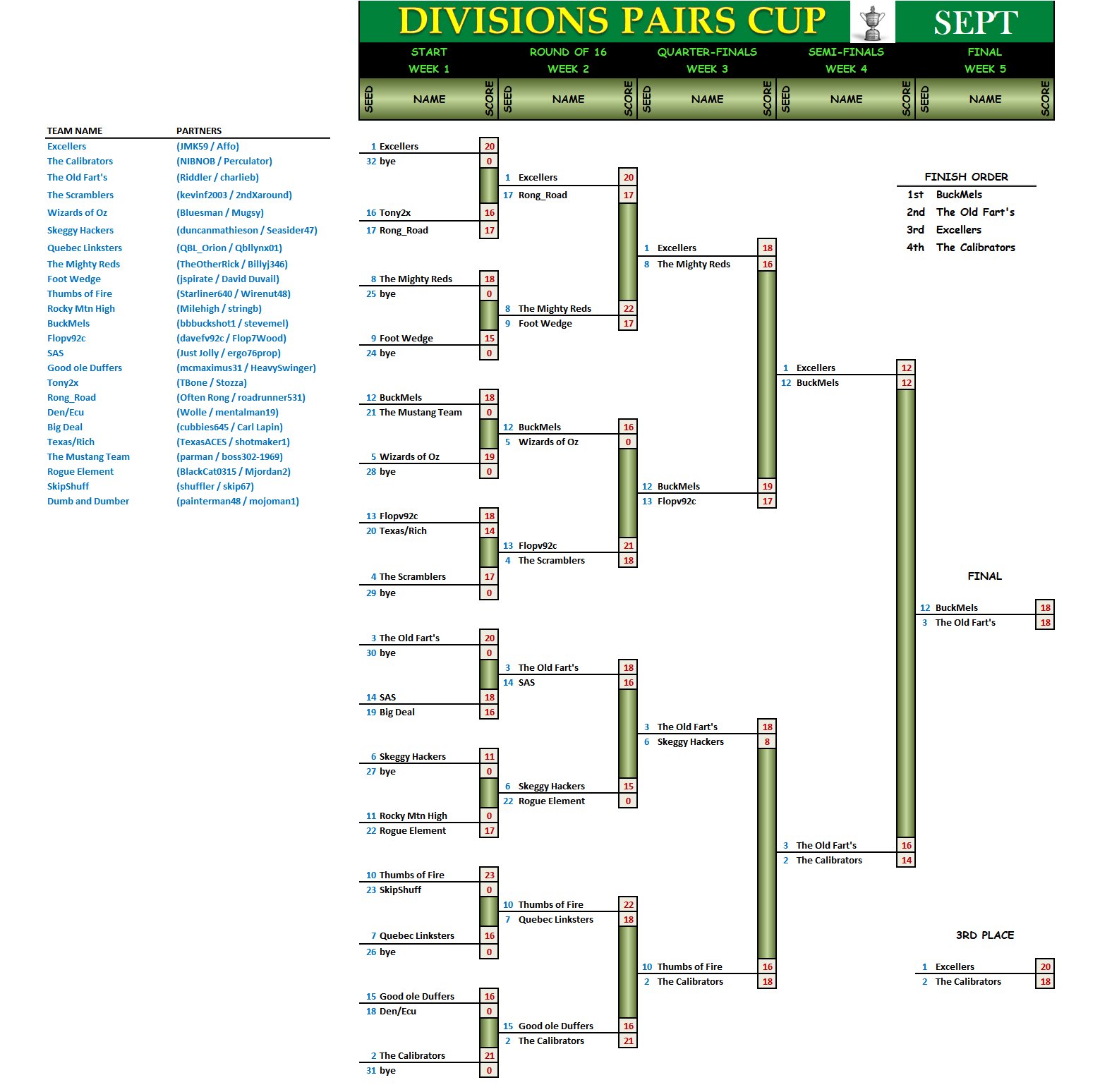 Congrats to the team of bbbuckshot1 & stevemel, BuckMel for winning the Pairs Cup for September:
