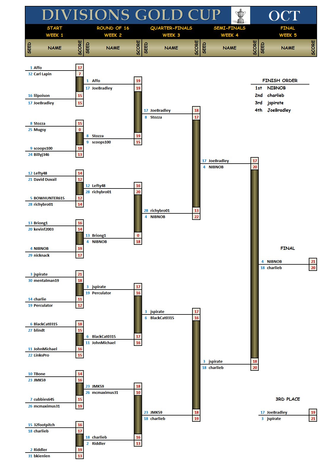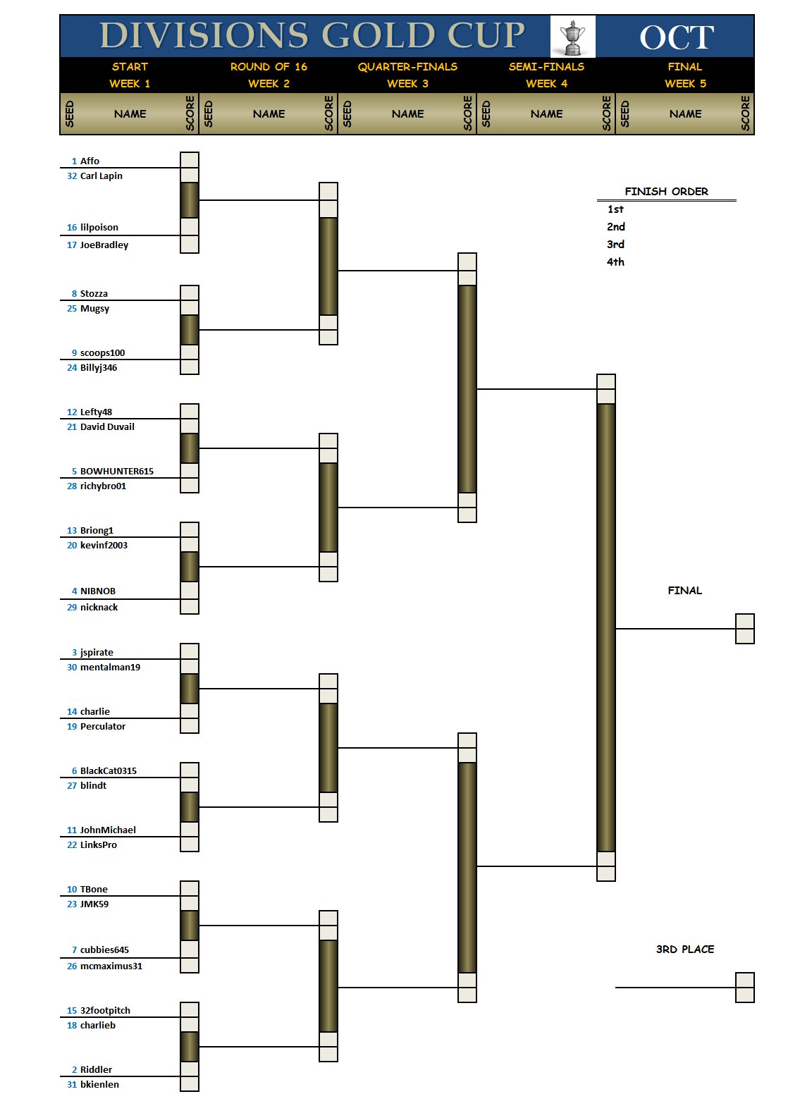 The Gold Cup bracket for the top 32 scores from September: