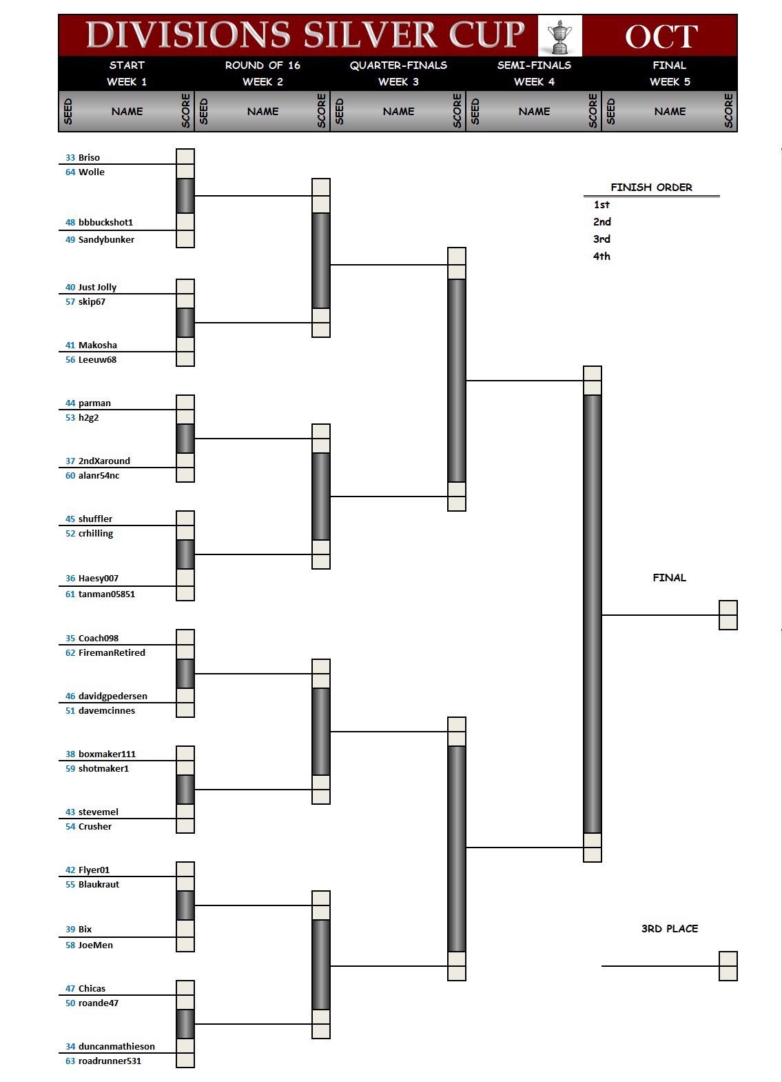 The Silver Cup bracket for scores 33 to 64 from September: