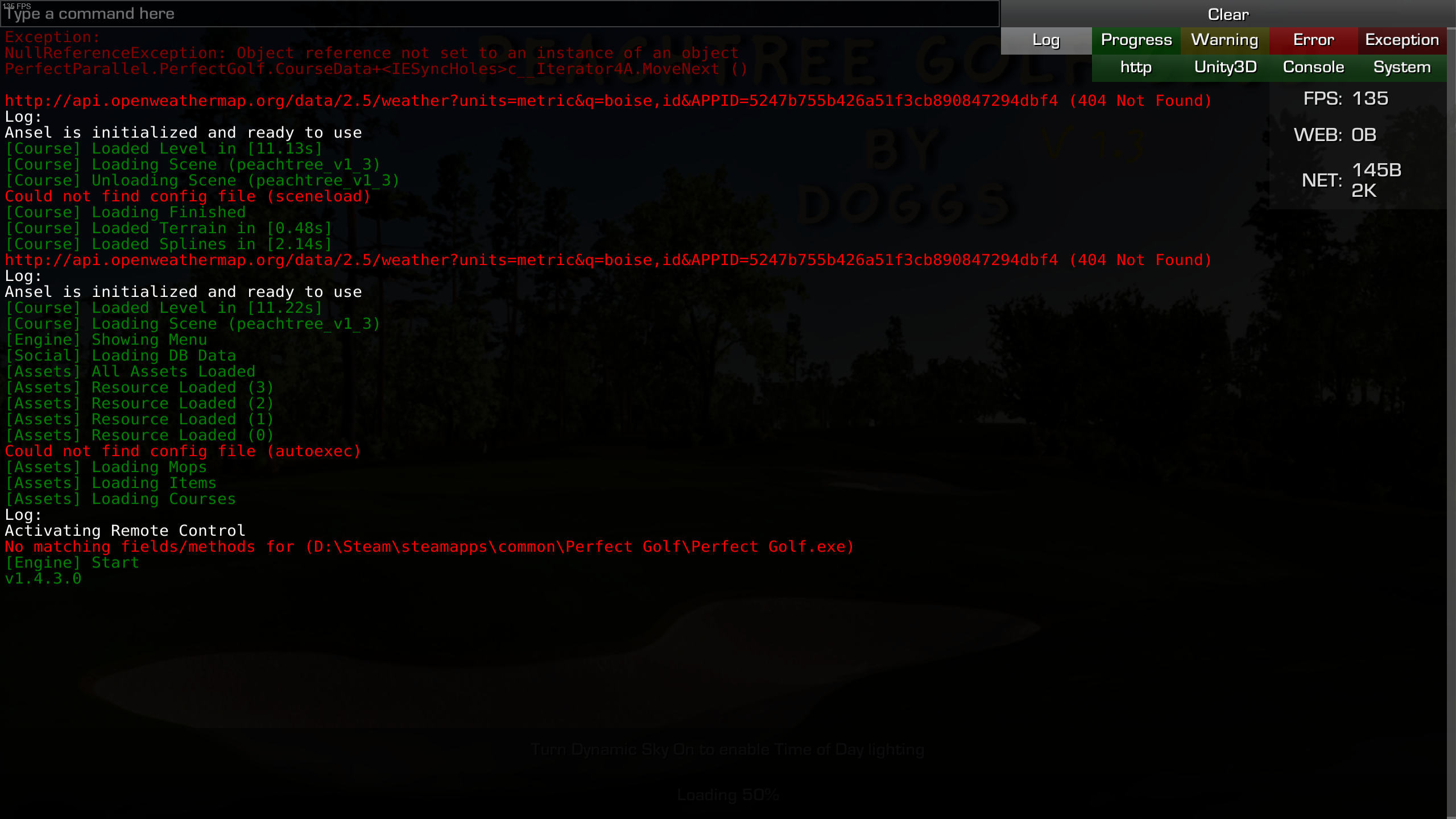 However the course for the American Tour, Peachtree Golf Club, seems to be causing some players issues as it sticks at 50% and doesn't load any further than that.