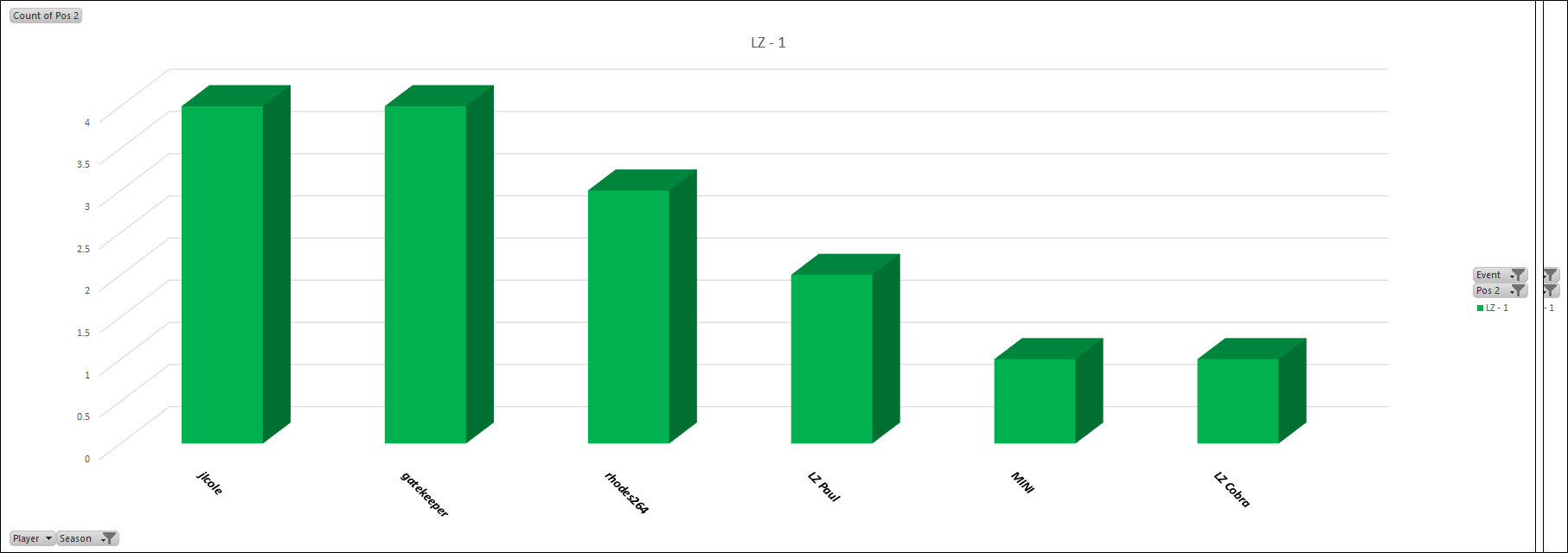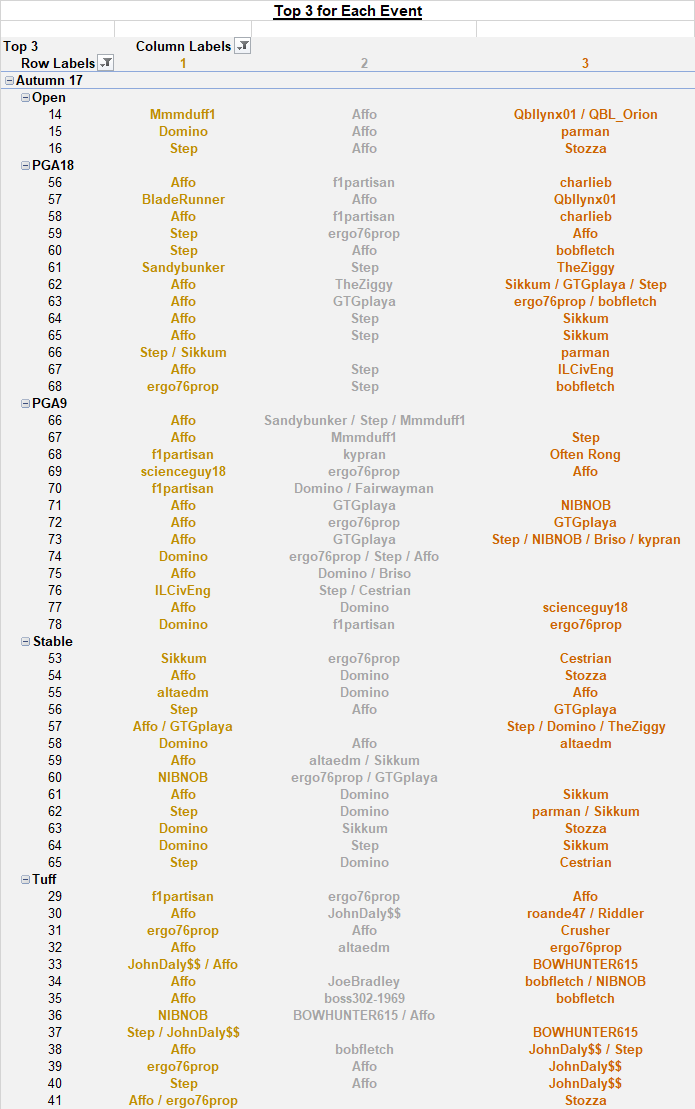 It is still duncanmathieson who leads the way in the table to end of Autumn 17 with 246 events played in, 12 ahead of BOWHUNTER615 who in turn is 1 ahead of Riddler.