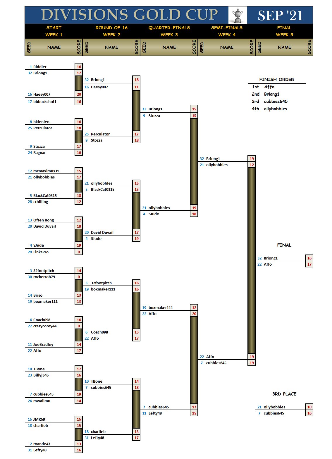 The Gold Cup bracket for the top 32 scores from August 2021: