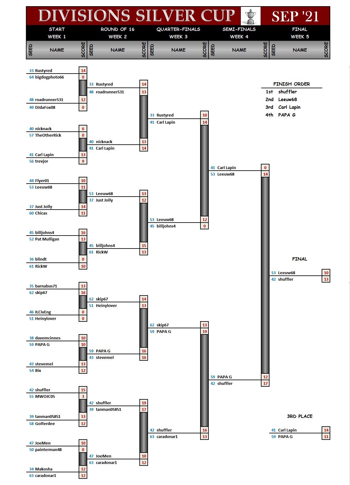 The Silver Cup bracket for scores 33 to 64 from August 2021: