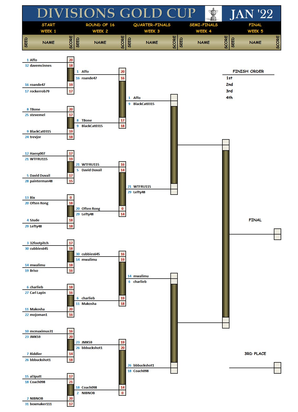 The Gold Cup bracket for the top 32 scores from December 2021: