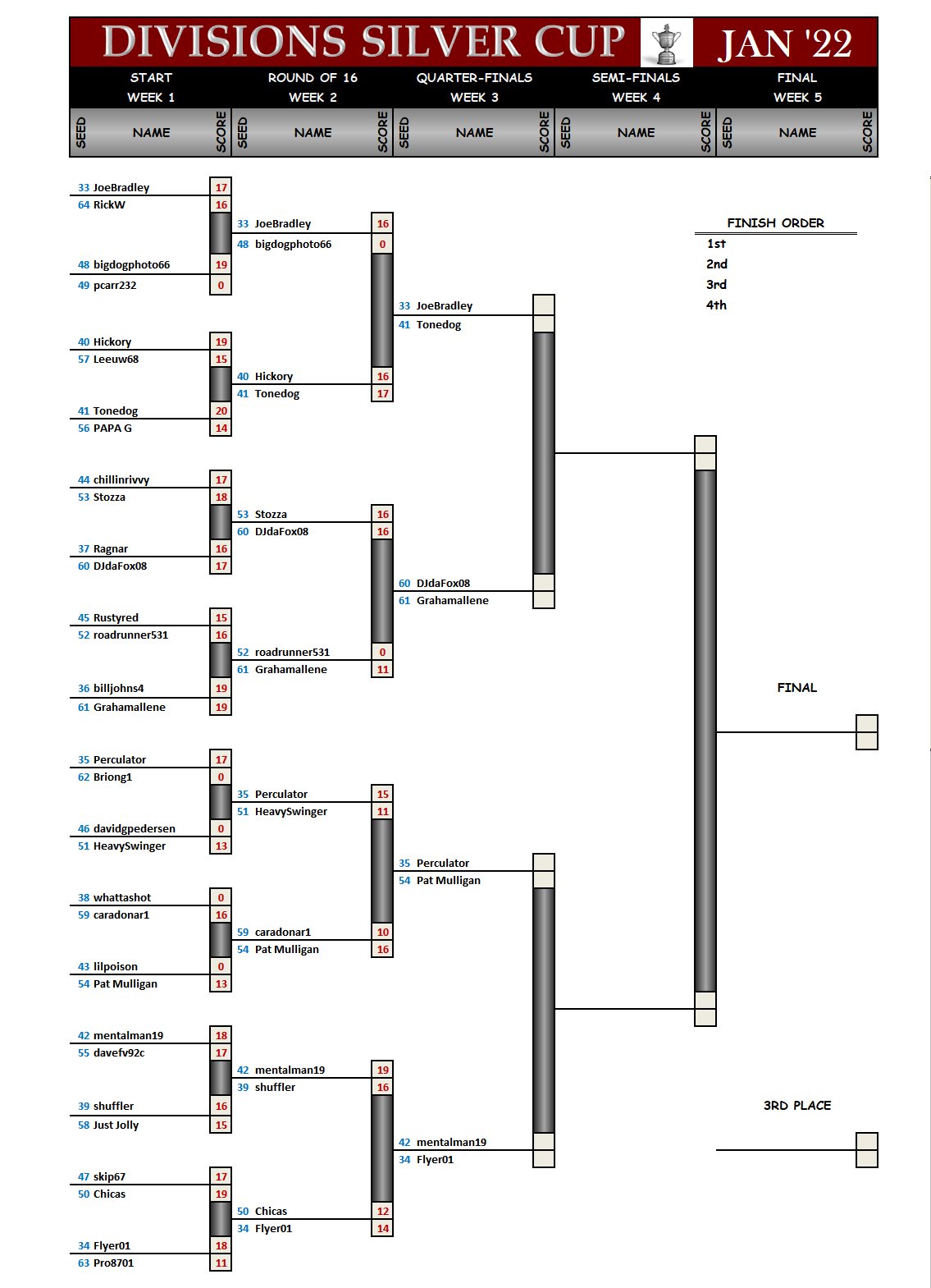 The Silver Cup bracket for scores 33 to 64 from December 2021: