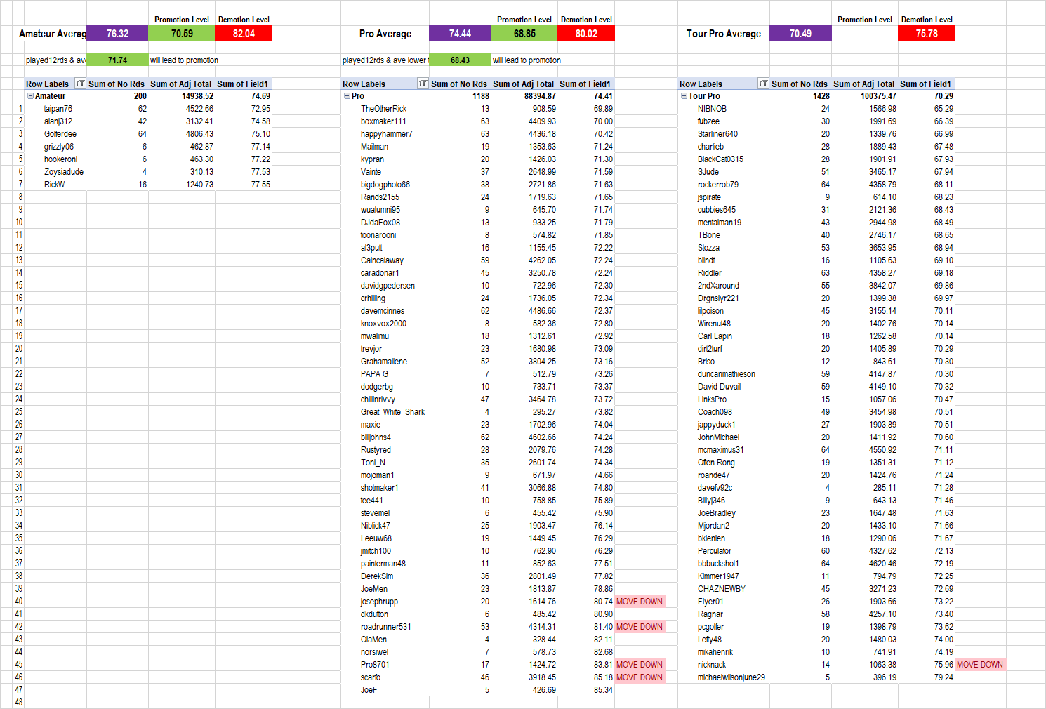 Player Tier Movements are calculated based on the PGA 9, PGA 18, PGLS Open and PGLS Tours tournies. Full rules can be found on this page ...