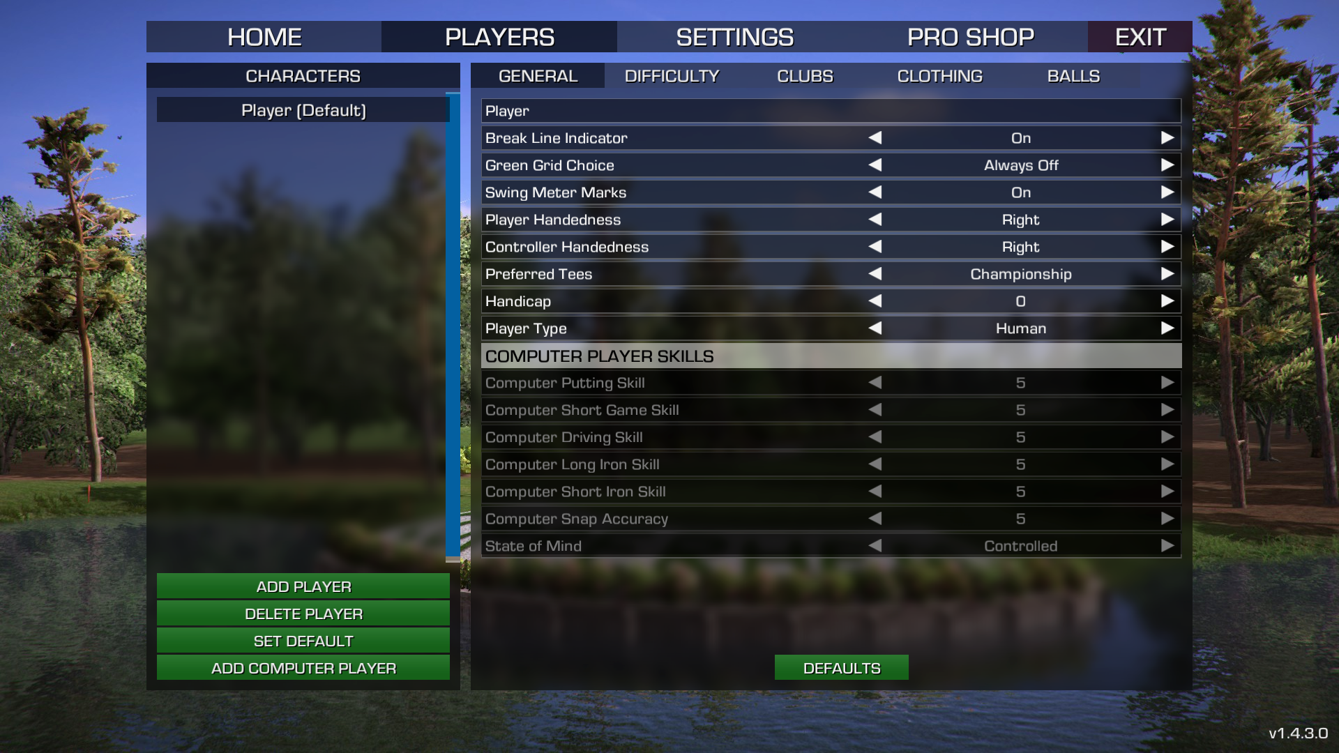After I deleted a previous player . The game will not load my normal named player . Also I have a giant golf ball in the clothing and club settings . Add to that when I try to load a game with the computer player it has the wheel of no connection .