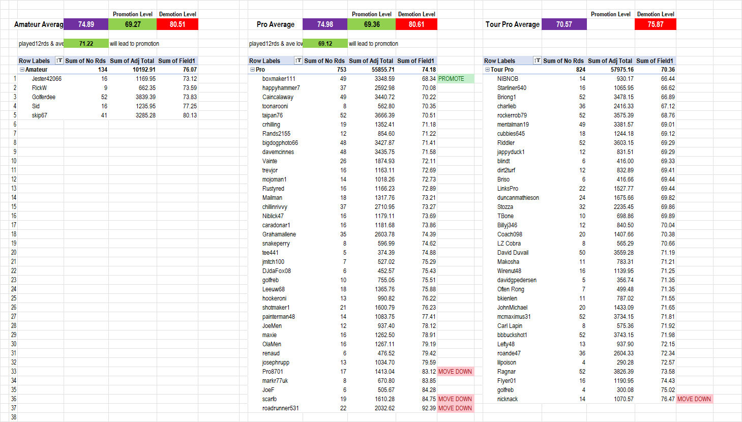 Player Tier Movements are calculated based on the PGA 9, PGA 18, PGLS Open and PGLS Tours tournies. Full rules can be found on this page ...
